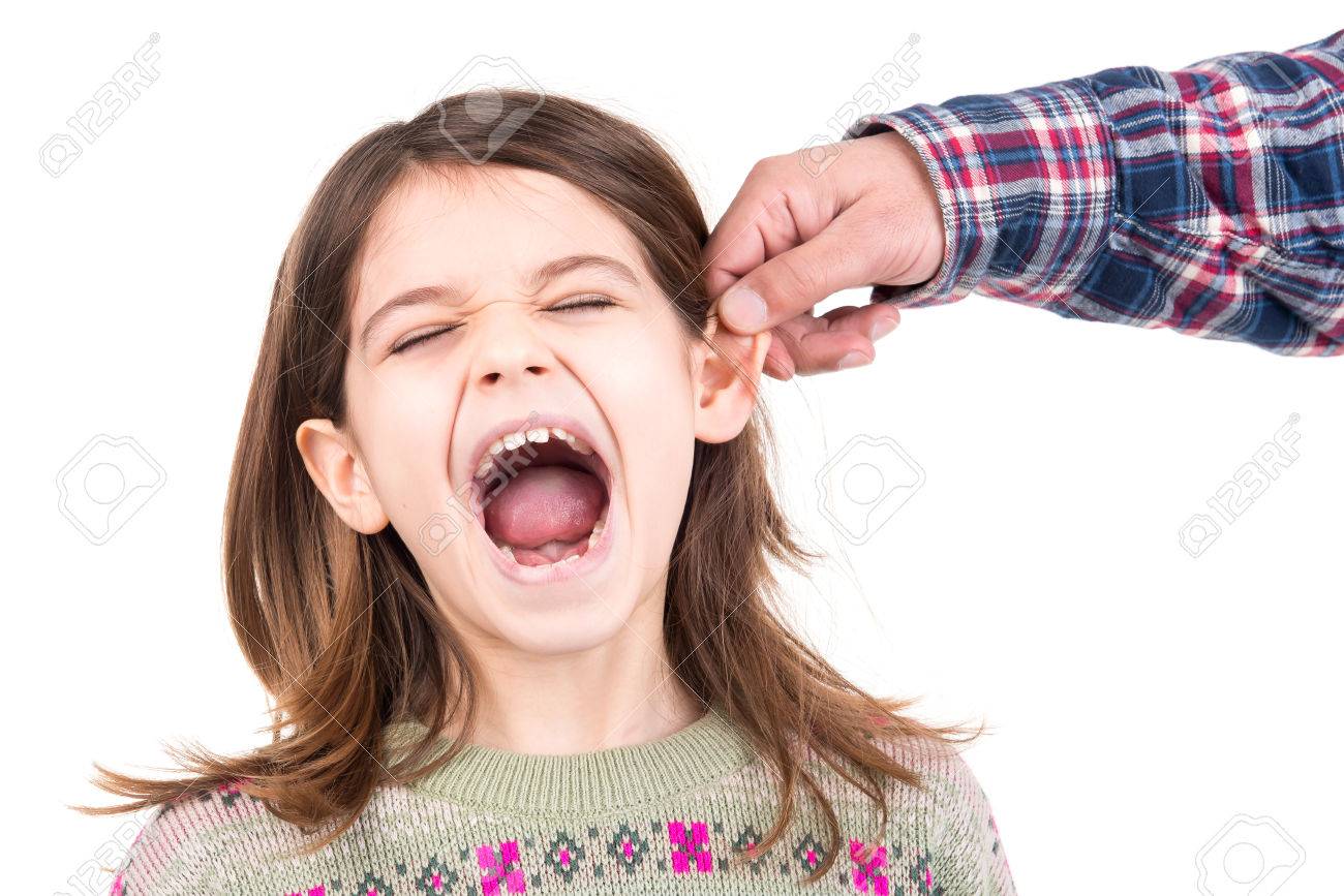 耳を引っ張ると処罰されている若い女の子 の写真素材 画像素材 Image